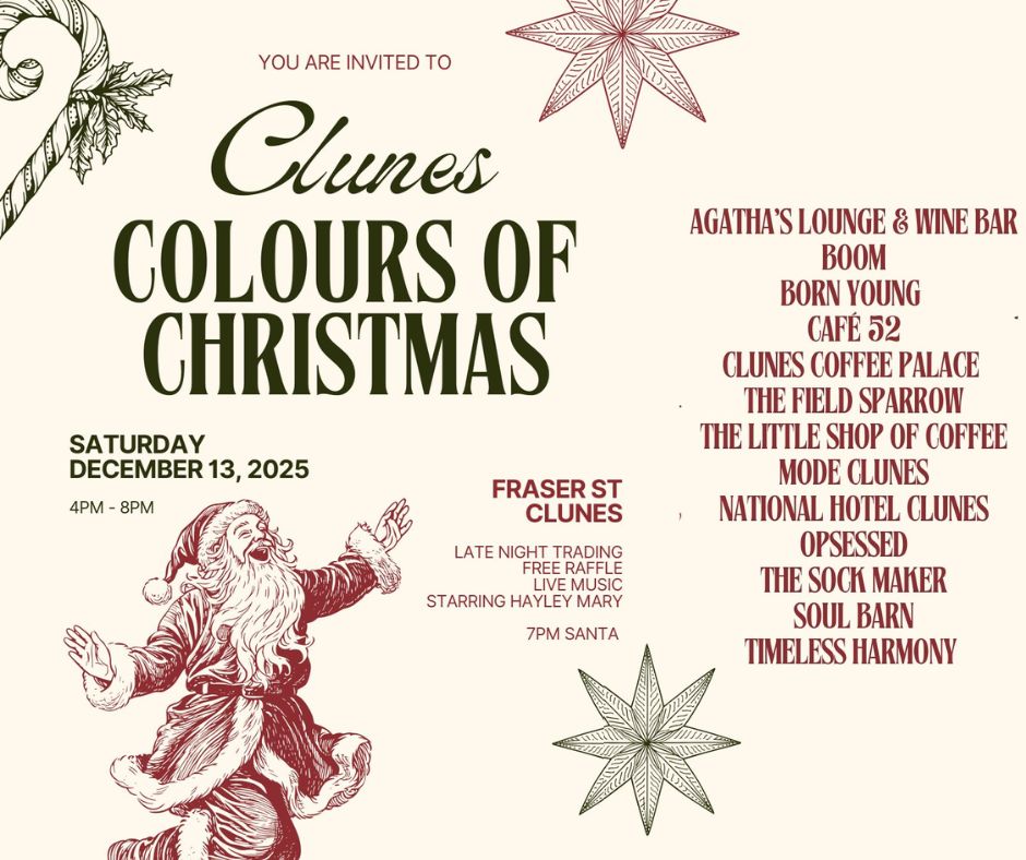 Clunes historic Fraser Street will come alive with the buzz of Christmas cheer.