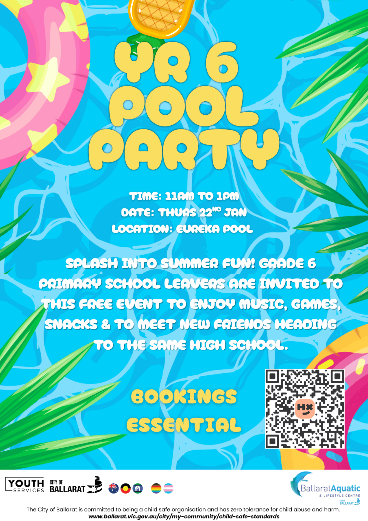 The City of Ballarat Youth Services team and Aquatic and Lifestyle team are hosting a Summer Pool Party at the Eureka Pool.