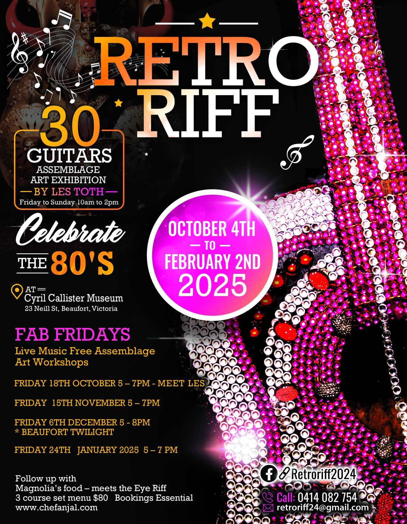 In augural exhibition of 30 assemblage art guitars – artist les Toth – uses re cycled guitars and creates an art story like no other.